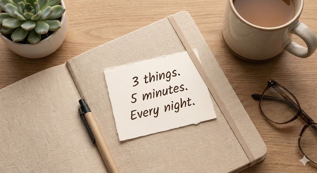 Instead of writing “I’m grateful for my family,” write “I’m grateful my daughter laughed at my joke today because it reminded me why connection matters.” Specific gratitude activates stronger neural responses.