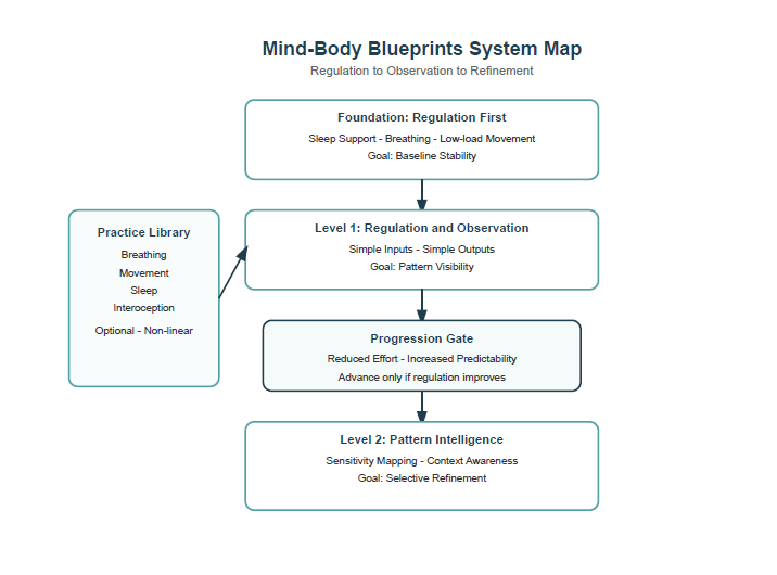 The goal of the Mind-Body Blueprints framework is not to optimize every behavior. It is to make the underlying patterns clear enough that stable regulation becomes easier to support.