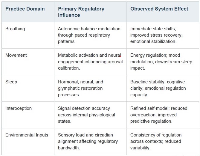 Small, repeatable inputs often shape regulation far more reliably than dramatic interventions. When these inputs are observed consistently across several days, the interactions between sleep, movement, breathing, attention, and environment begin to reveal themselves.